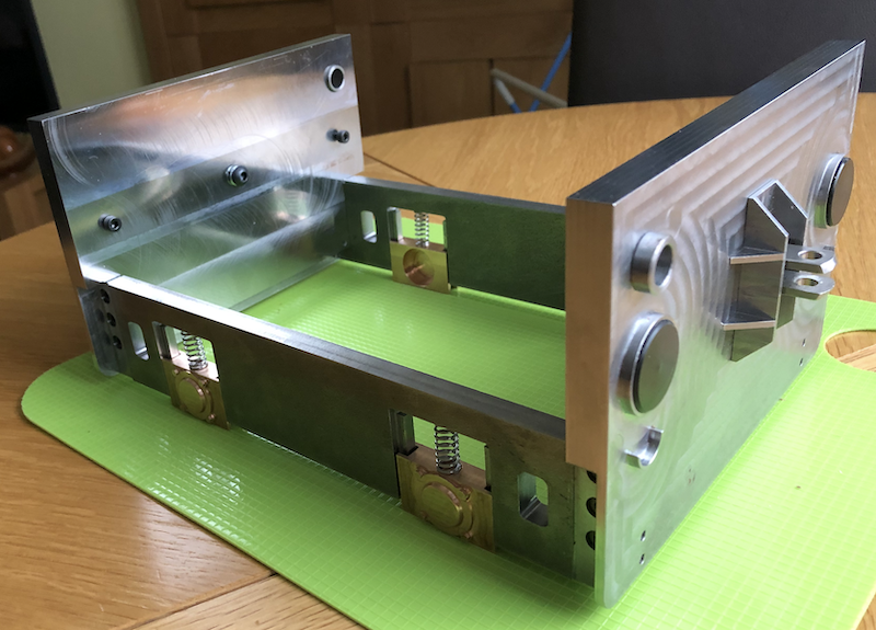 At last there has been some available machining time and the first operation of machining the base plate and most of the other main panels has been completed. Several of the parts require futher operations to drill and tap holes in the edges of the parts. There are still a few parts that have not yet been machined. It has taken quite a while to get to this stage, but I'm not complaining, I know they'll be done as soon as machine time becomes available.